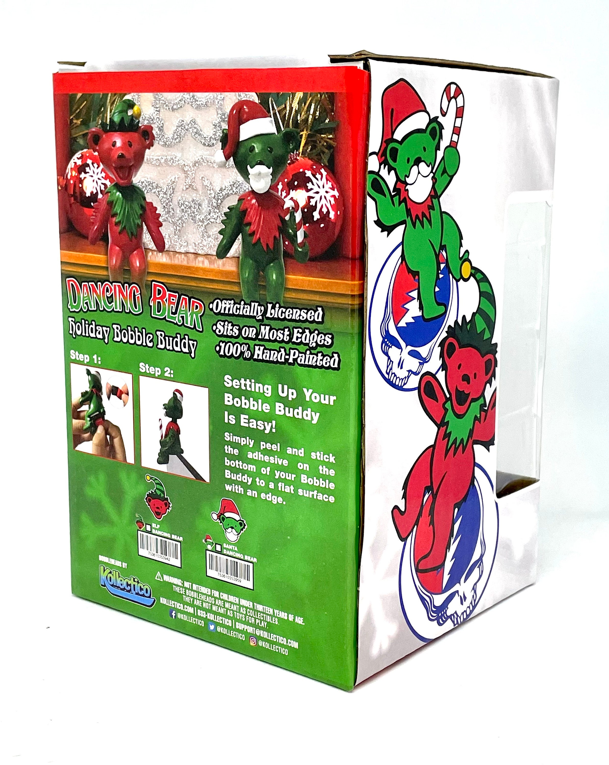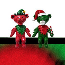 Limited Edition Grateful Dead Dancing Santa & Elf Bear Bobble Buddy Bobbleheads can sit safely on your monitor, shelf, dashboard and everywhere else!
