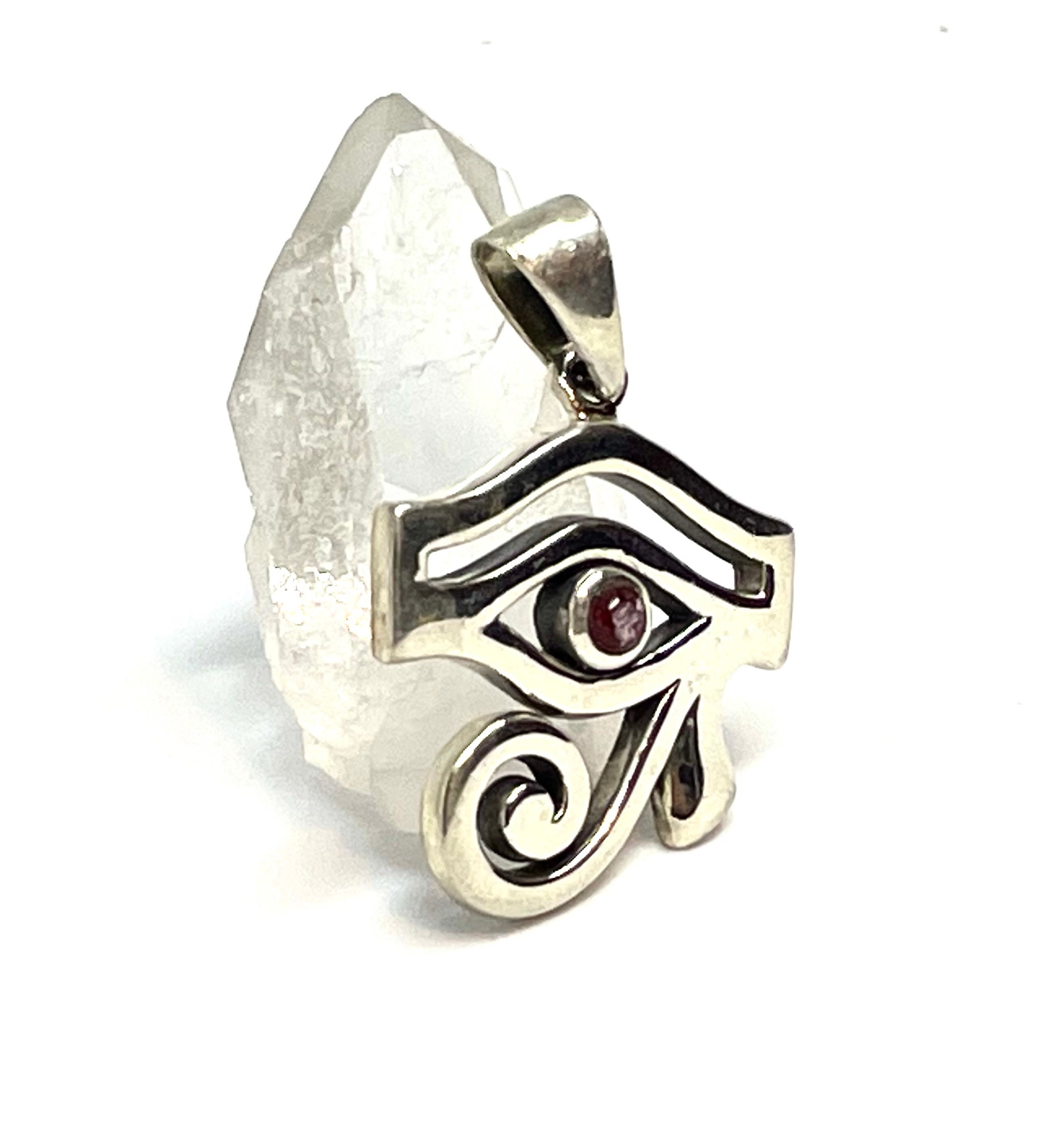 Here is a simple, well made, beautiful All Seeing Eye of Horus pendant featuring a top quality natural faceted gemstone. Hand cast in sterling silver and built to last.