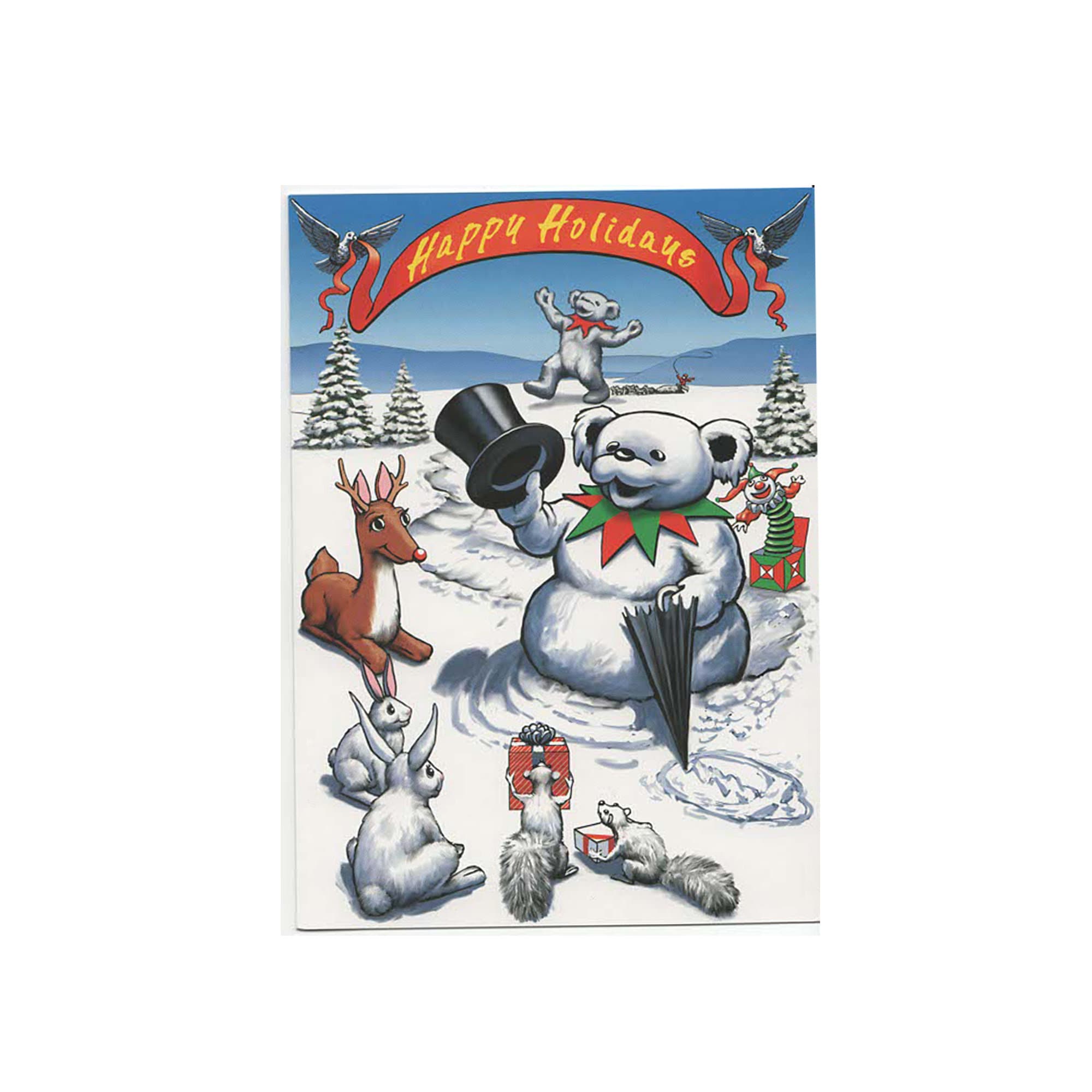 Vintage Grateful Dead Greeting Card Dancing Bear Snowman with Woodland Critters Winter Christmas Xmas Officially Licensed 2 pk
