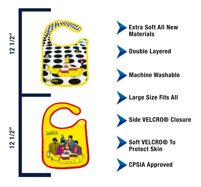 Bring Beatlemania to the Next Generation with The Beatles Bibs 2 pack set. Protect your young one's clothes with one of these soft cotton bibs.