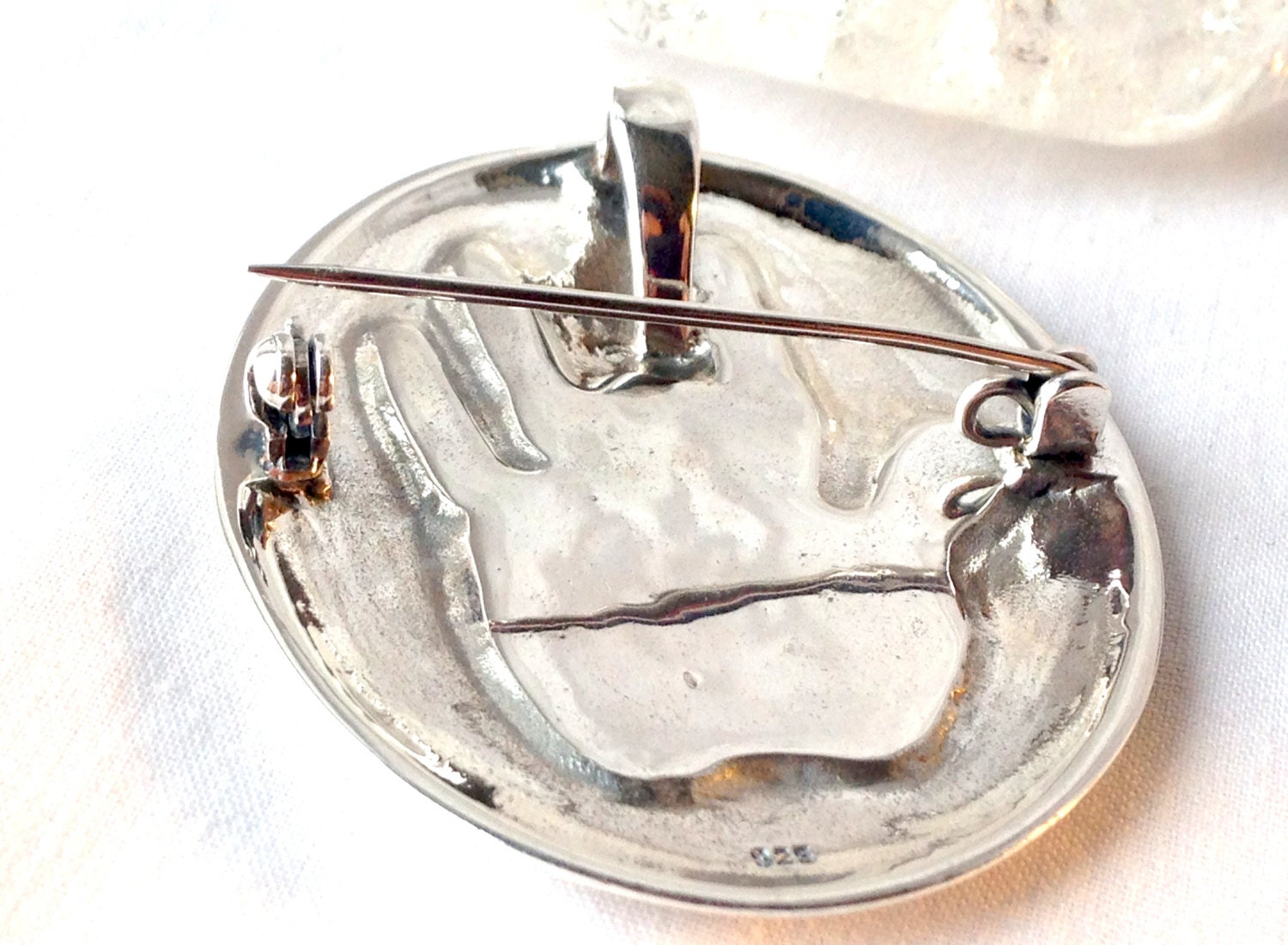 What makes this piece even GRATER is the fact that it can be worn as a pin or as a pendant. This piece features a locking safety style pin, as well as a large bale, which can easily accommodate chains up to 4mm.