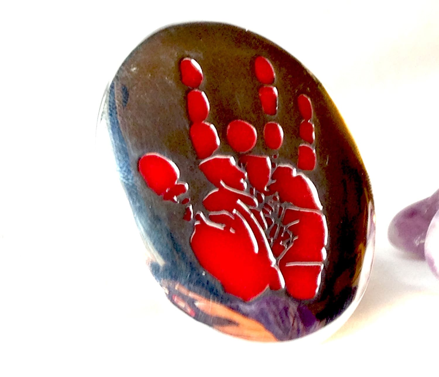 This piece is made from 100% solid .925 sterling silver (it will not turn your finger green) and a special jewelry grade enamel which will help to ensure that the black color remains vibrant for years to come.