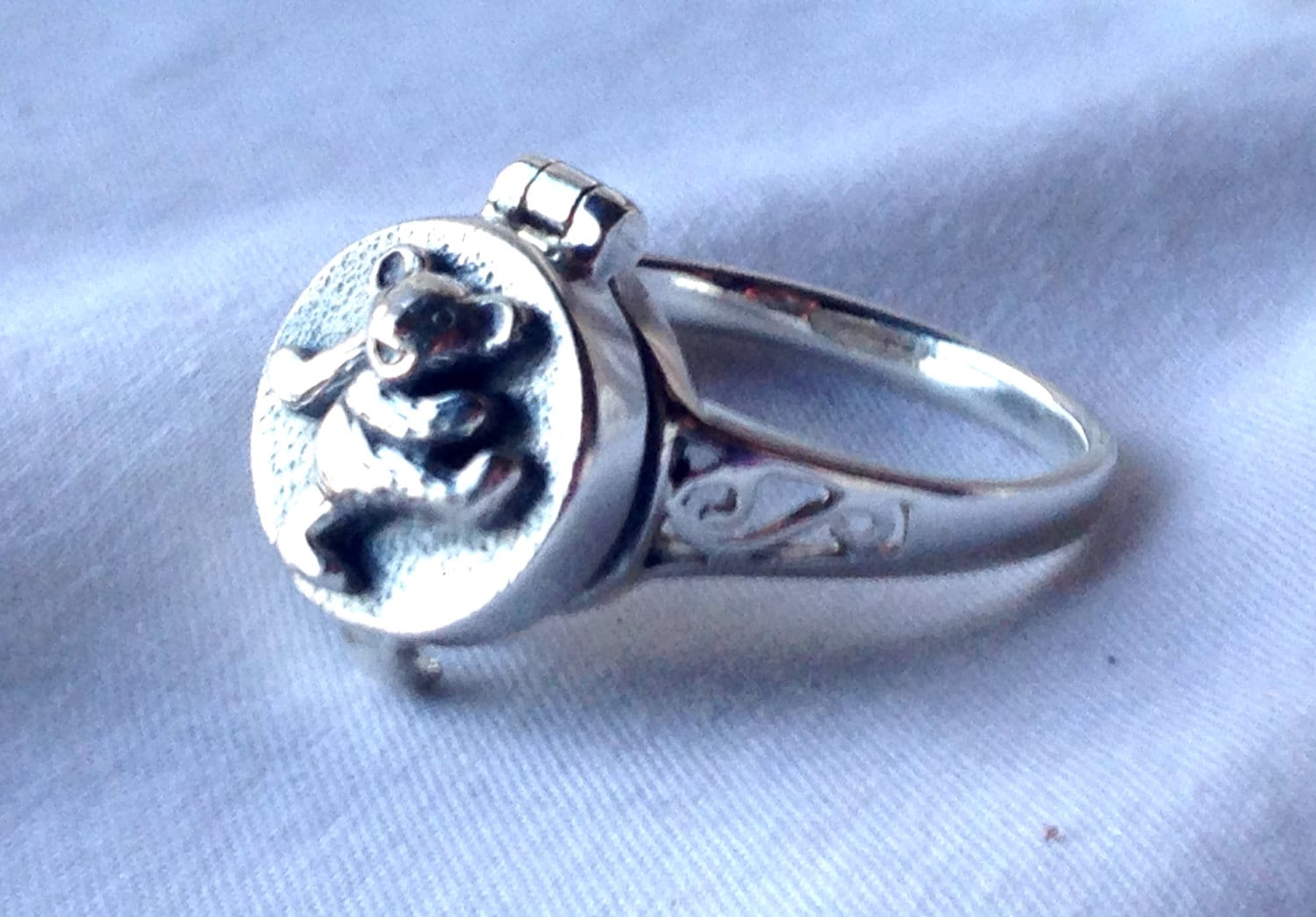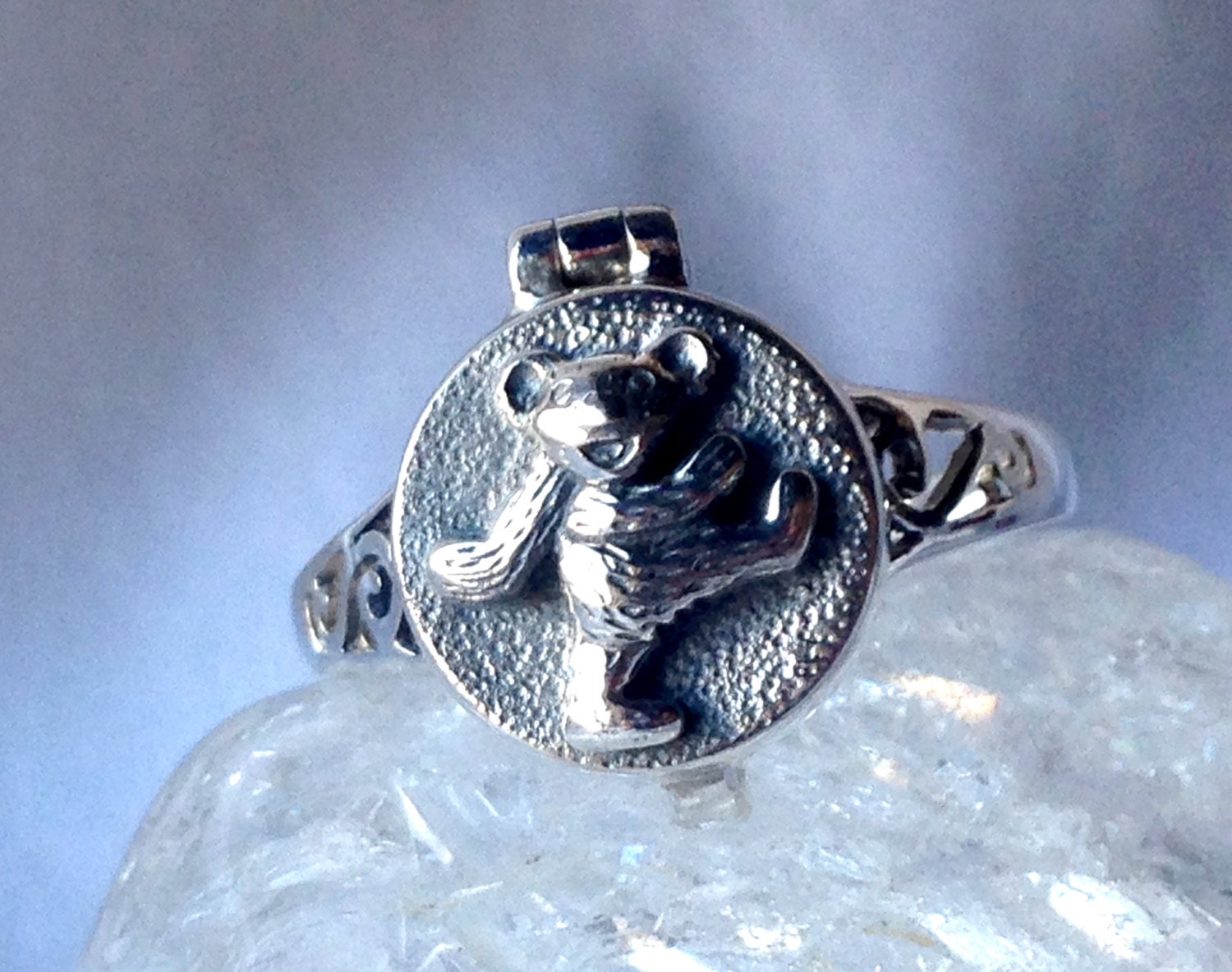 Here we have an awesome sterling silver dancing bear ring! Any dead-head will instantly recognize these little bears, as the dancing bear has come has become synonymous with the Grateful Dead over the years.