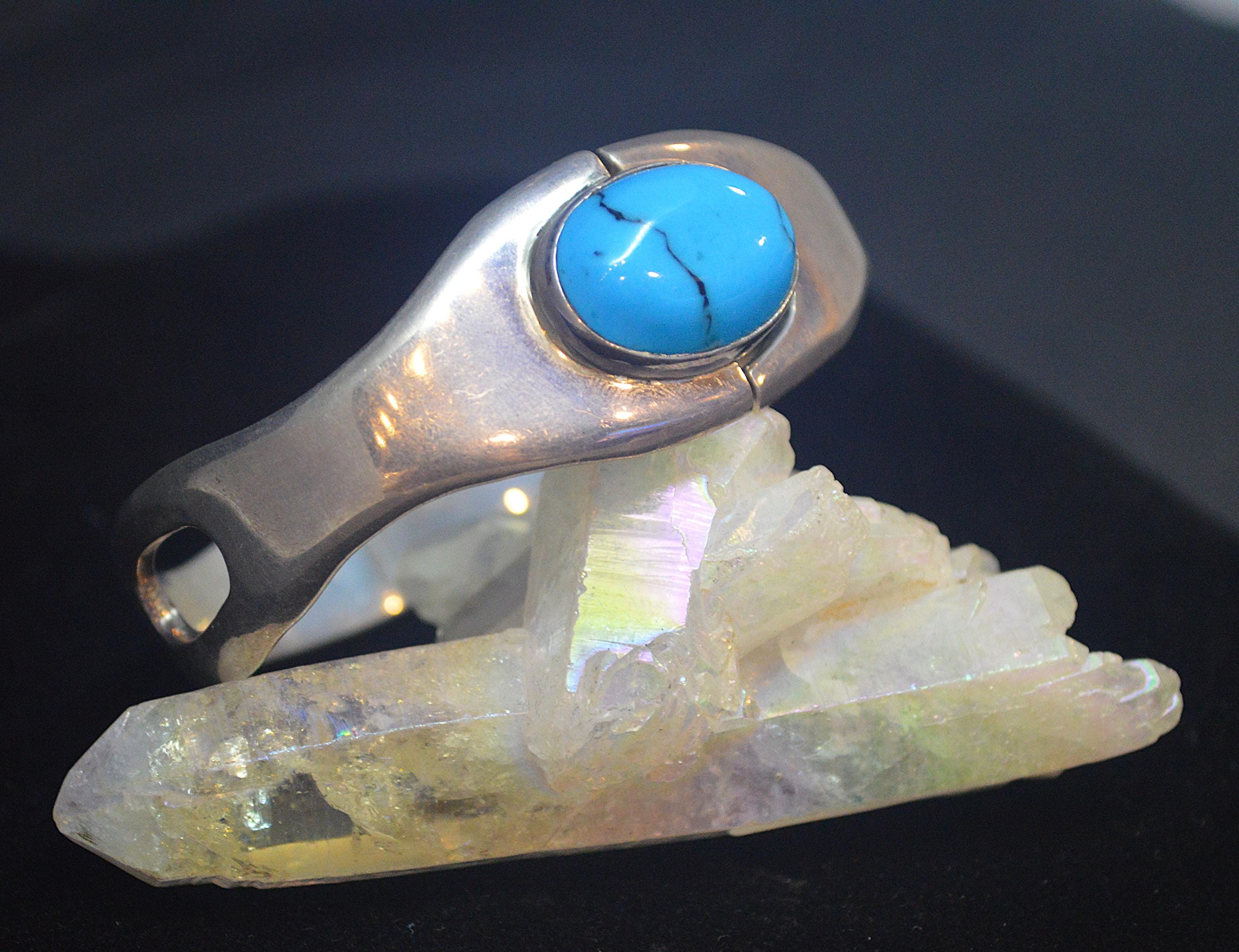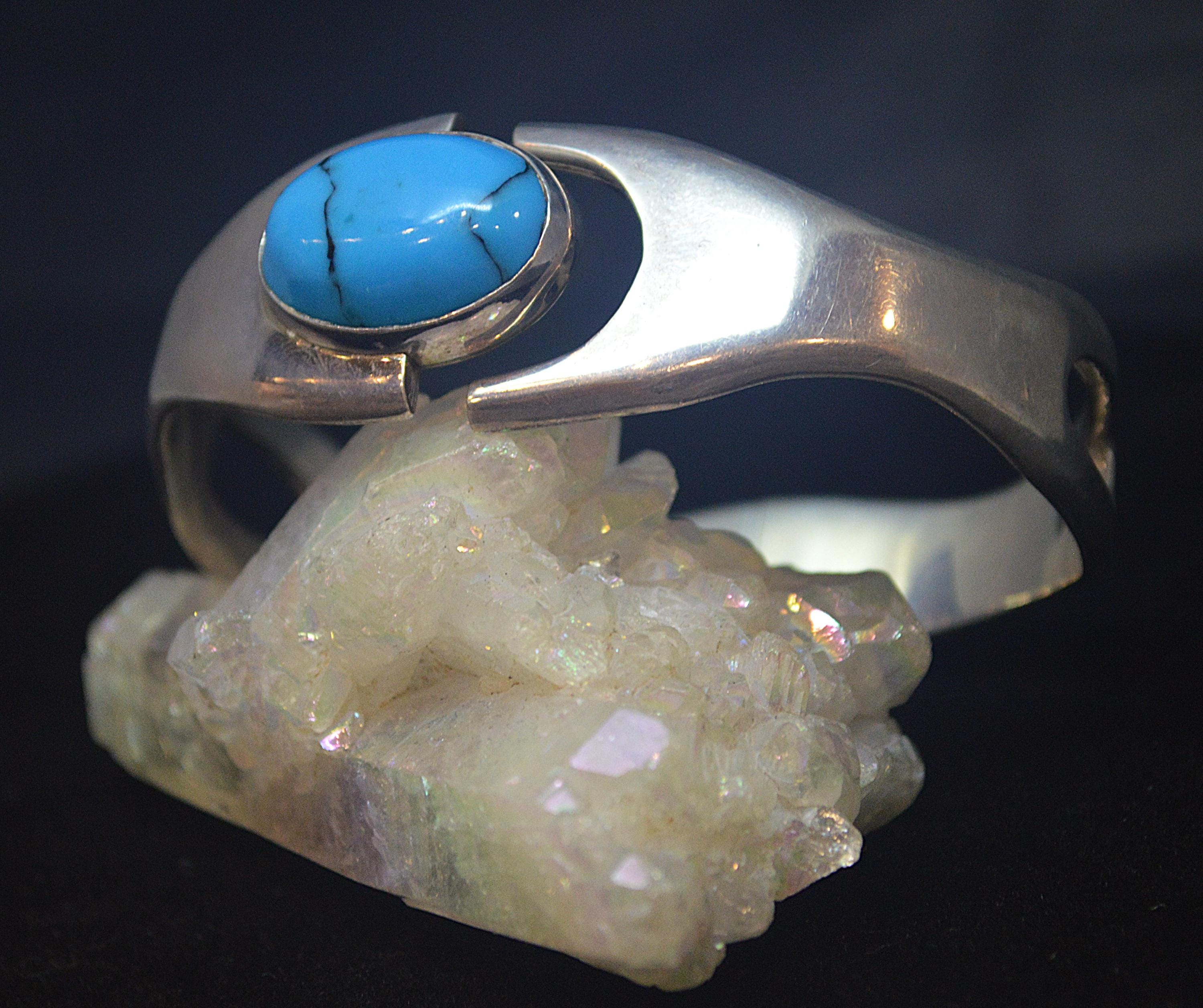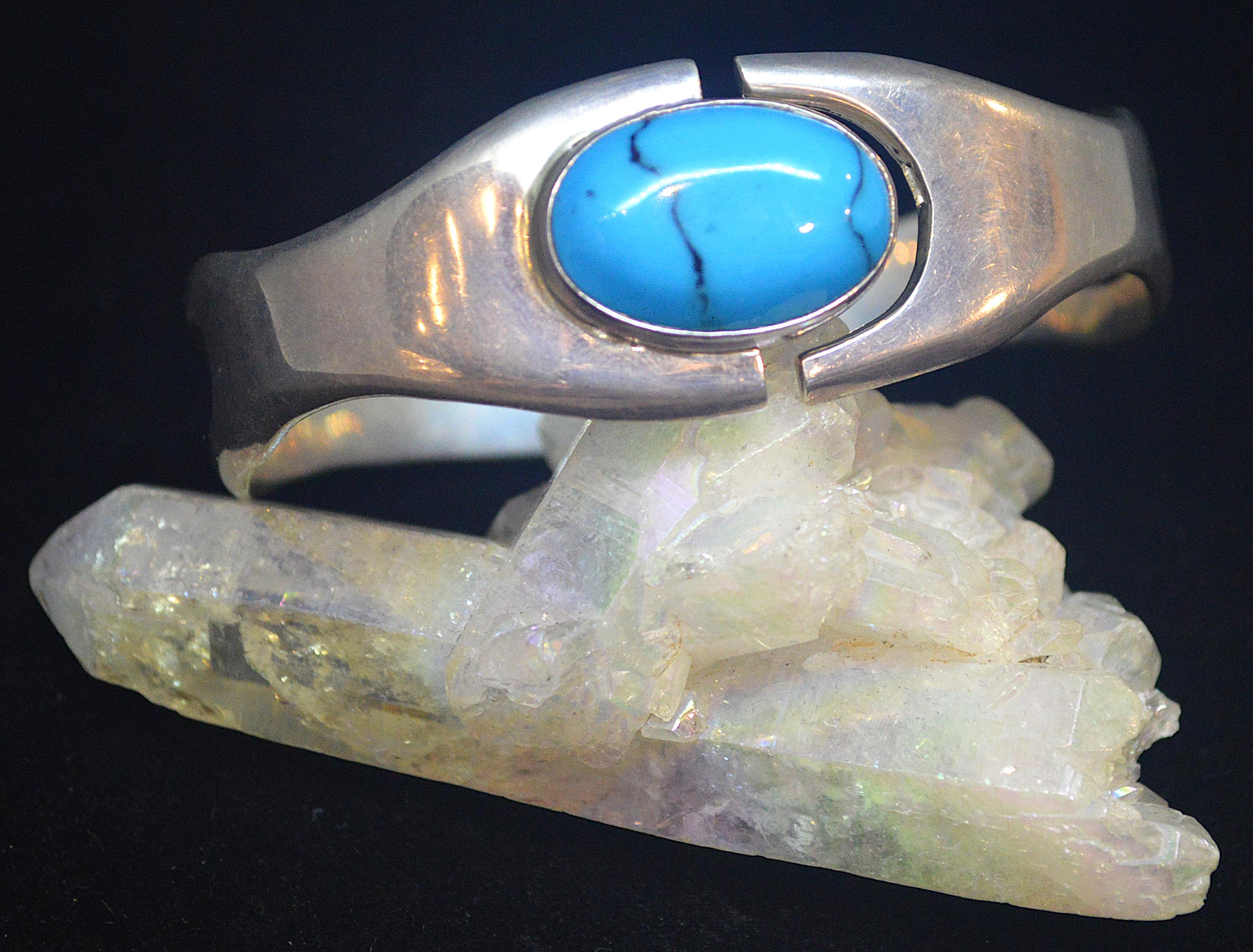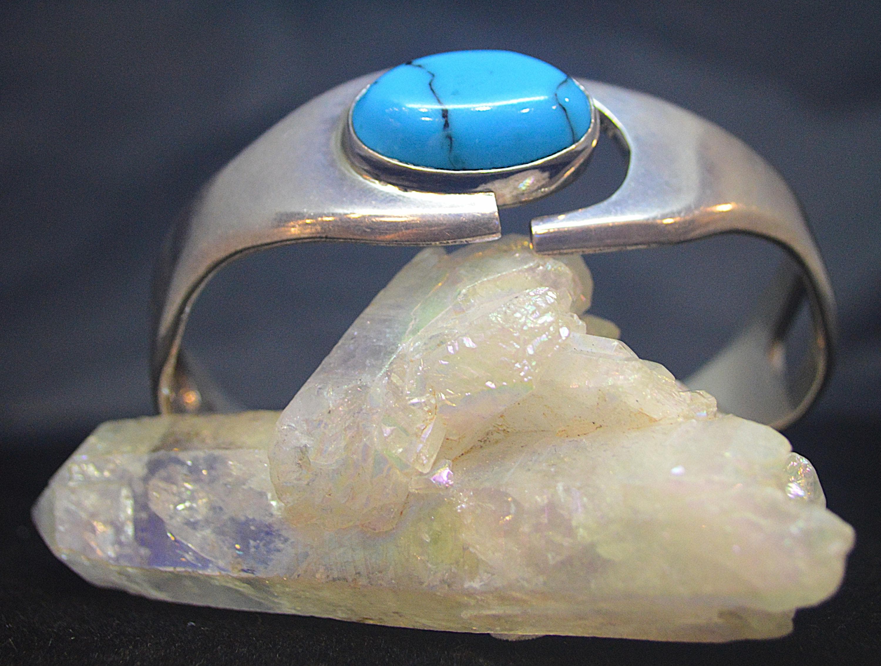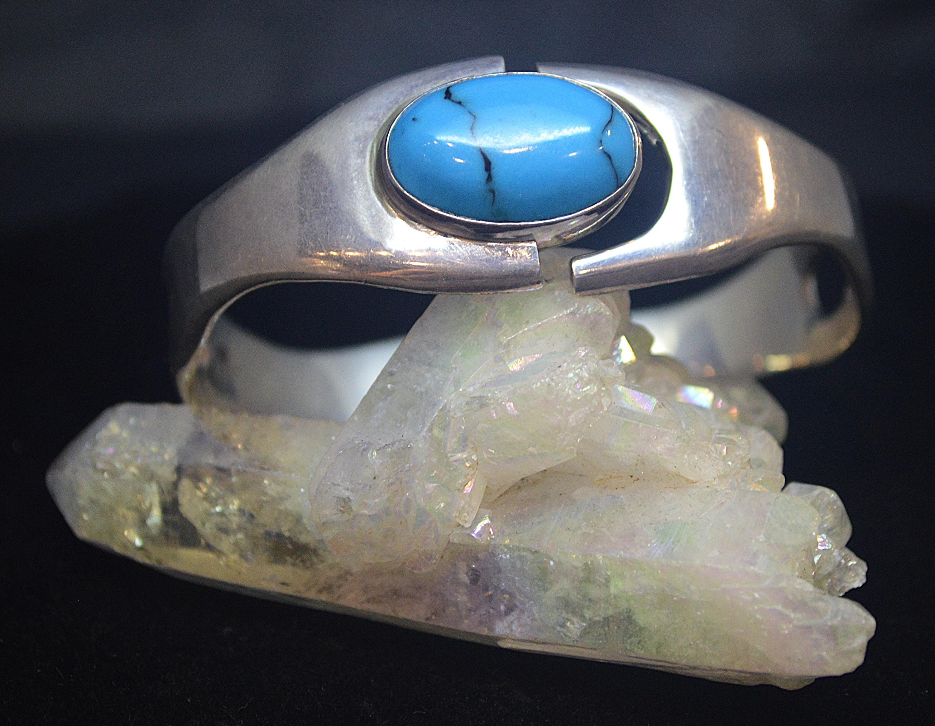 Vintage Sterling Cuff with Blue Howlite StoneSize: 8”Weight: 50 gramsMaterial: This cuff is crafted from 100% solid .925 sterling silver. It will NOT turn you green.