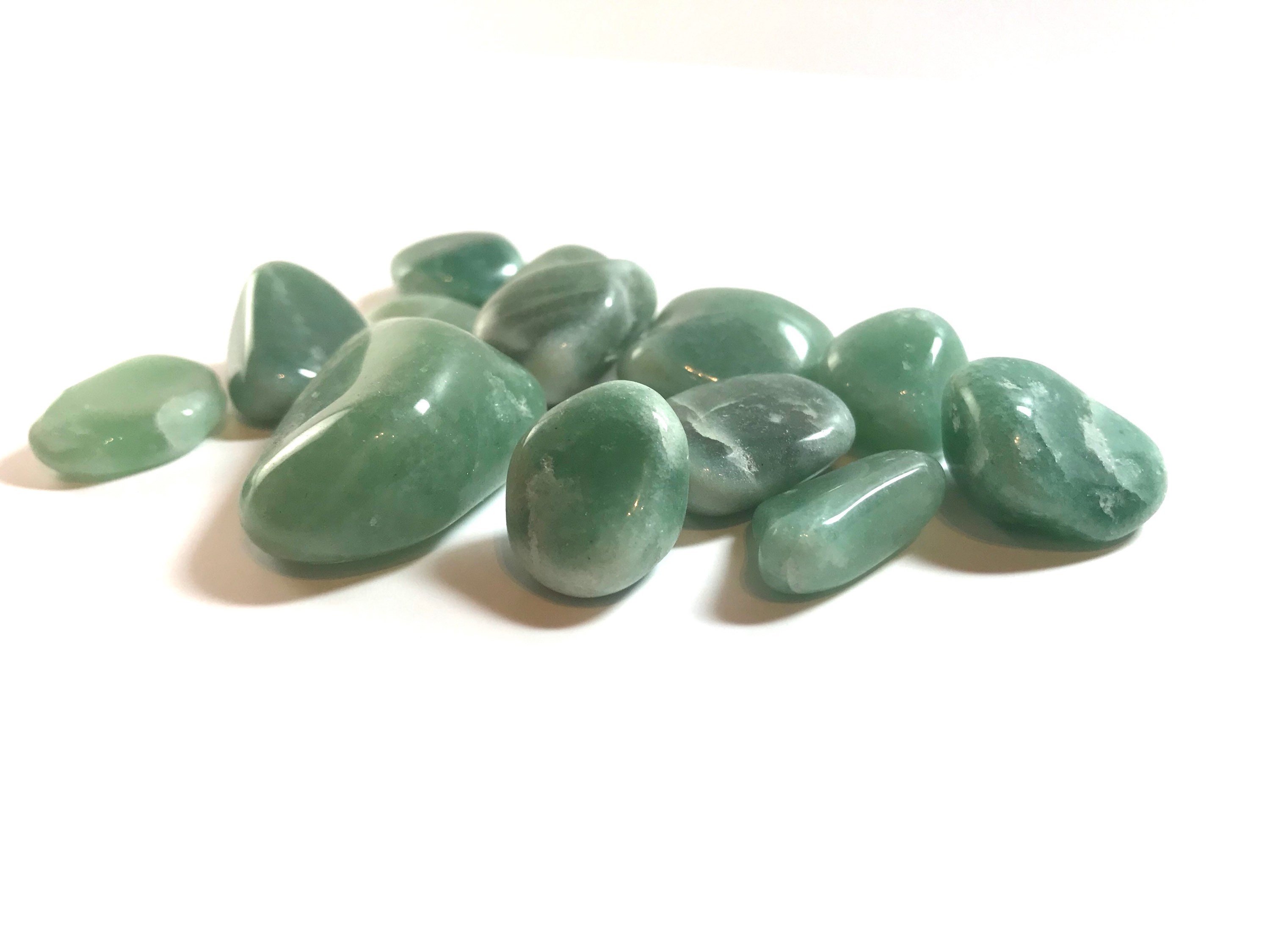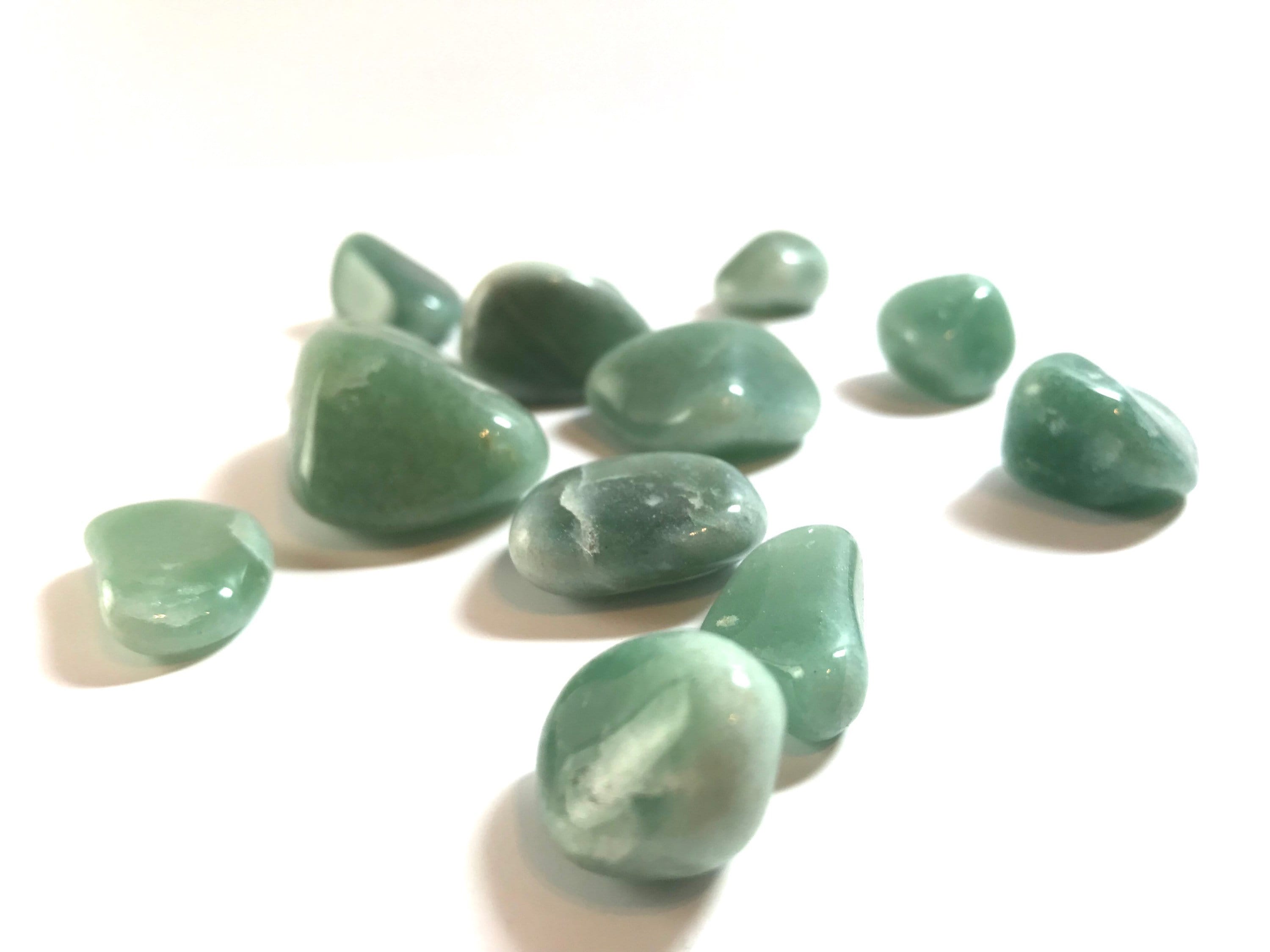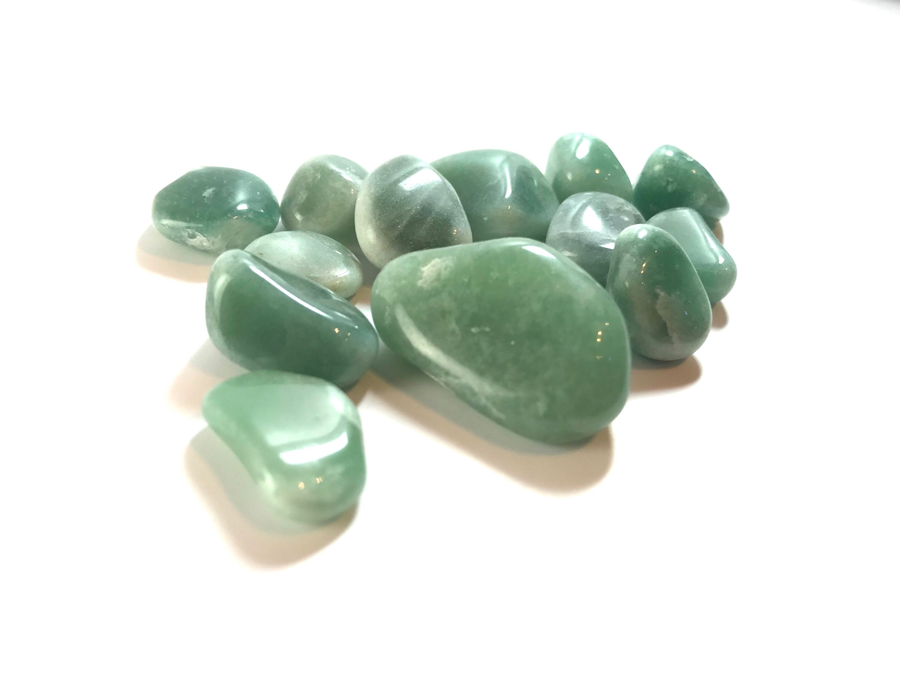 100 grams of tumbled Green Aventurine (approximately 10 pieces). Containing particles of mica formed from microcrystalline quartz, Aventurine is known for its sparkly sheen that glistens under light. Mined from India, a major source of green Aventurine, this beautiful stone is popular for using in jewelry and is often made into beads or incorporated into boxes, intricate figurines or otherartwork. Known as the Stone of Opportunity,” Aventurine is excellent for starting a crystal collection because of its stunning aesthetic and inexpensive price. The Aventurine stone is known in the gemstone world as one of the luckiest stones, which makes it a must-have for inviting good luck and prosperity into your life.