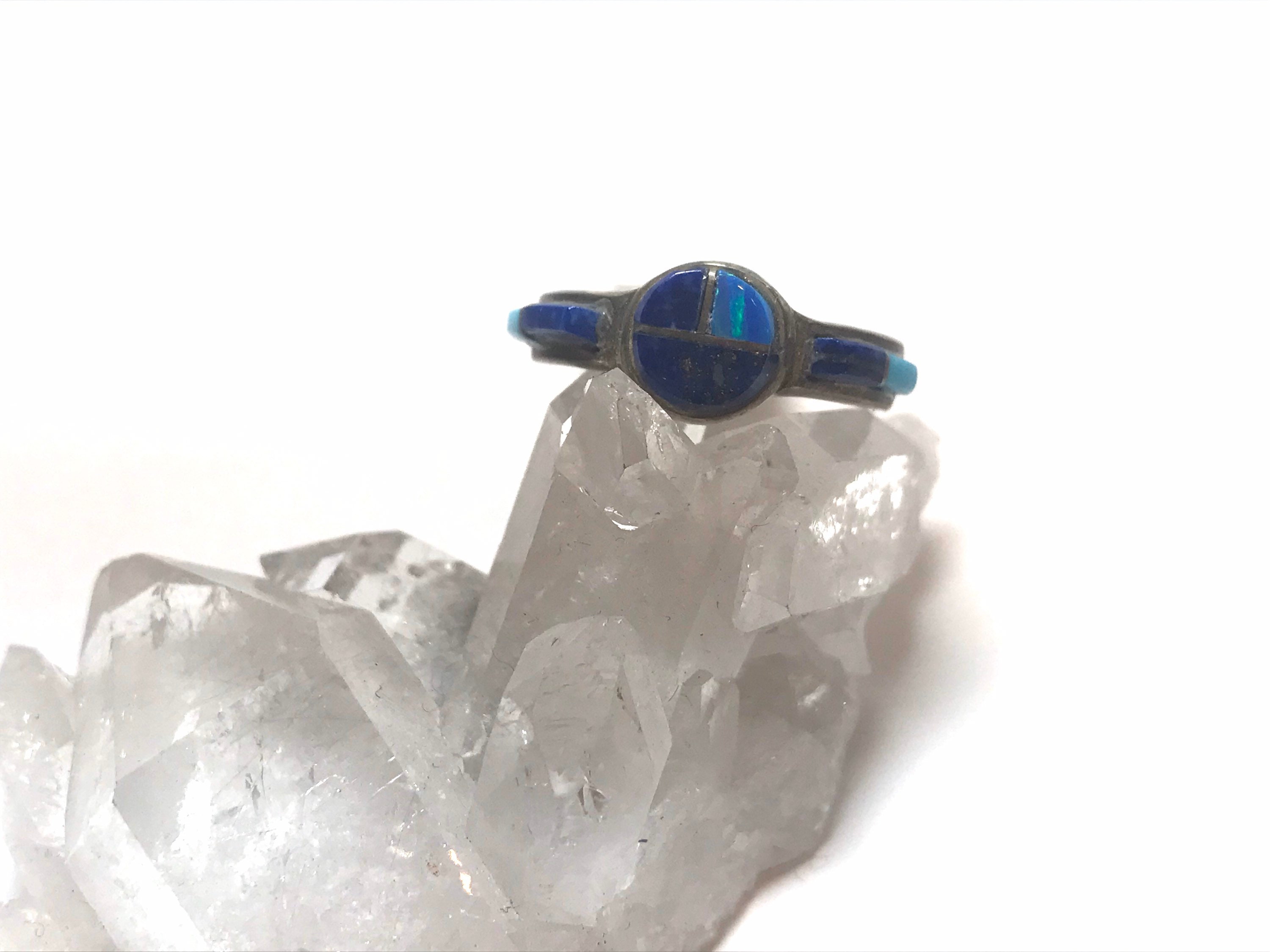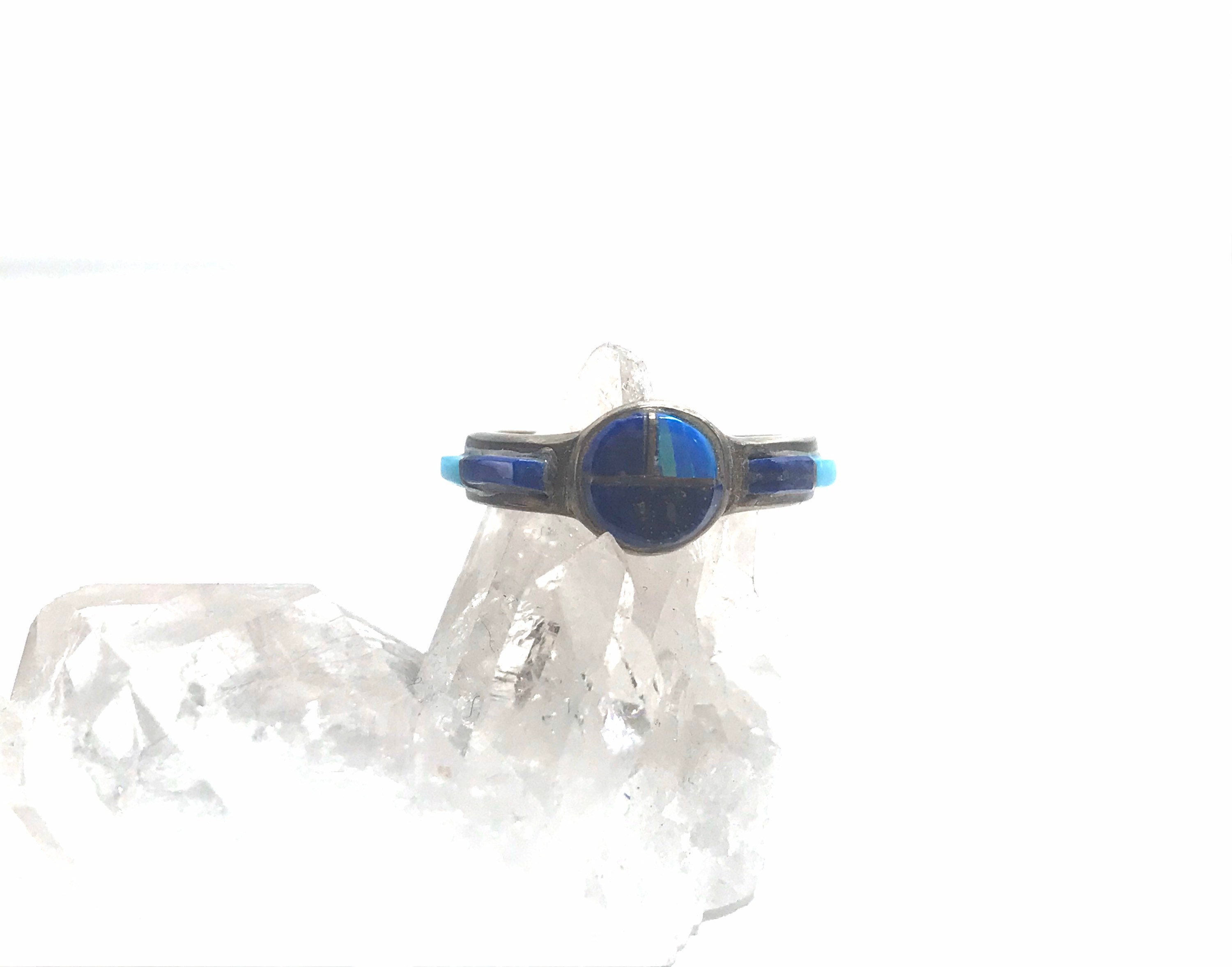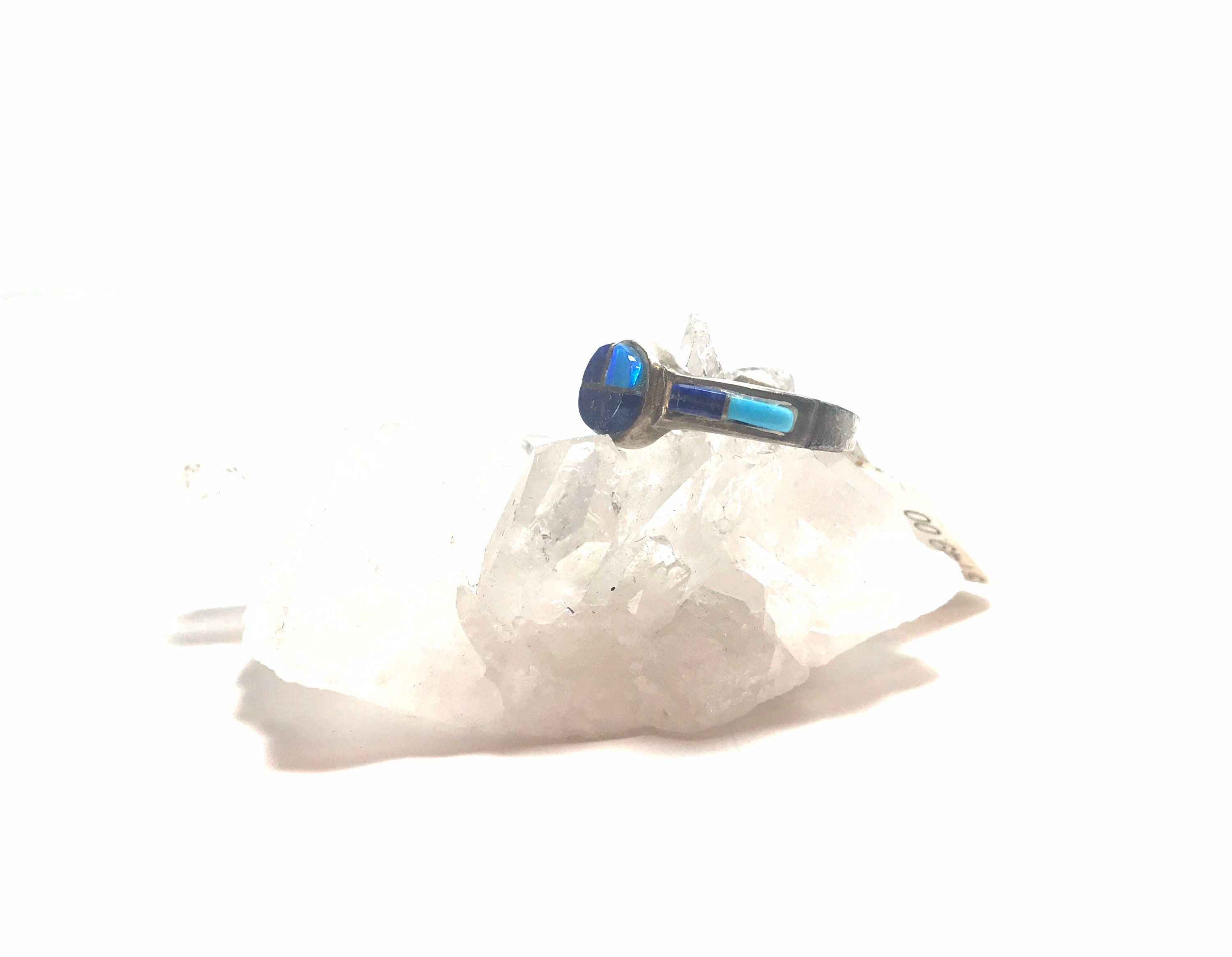 This is a gorgeous inlay of Turquoise, Lapis, and a beautiful piece of Opal in Sterling Silver.