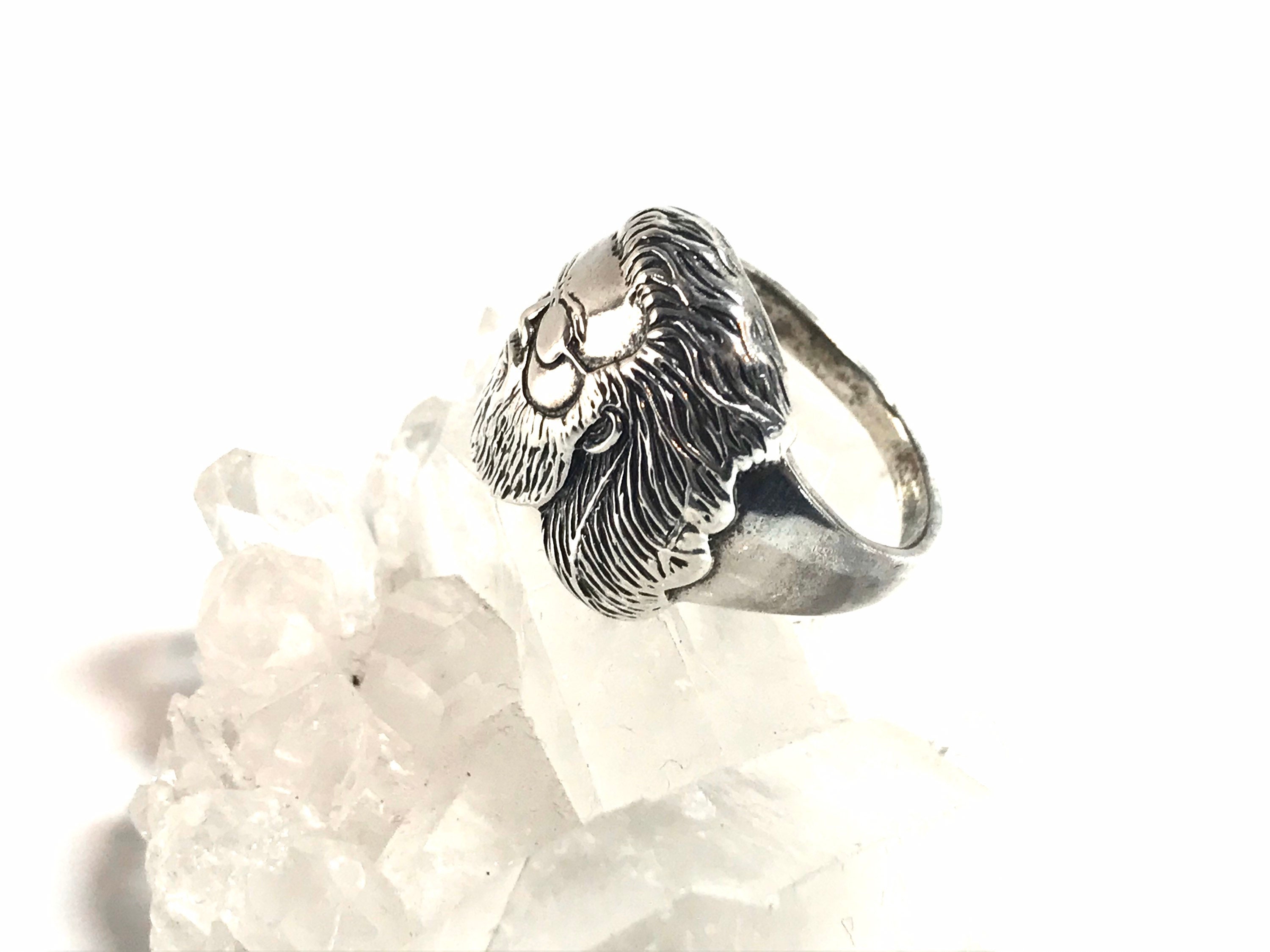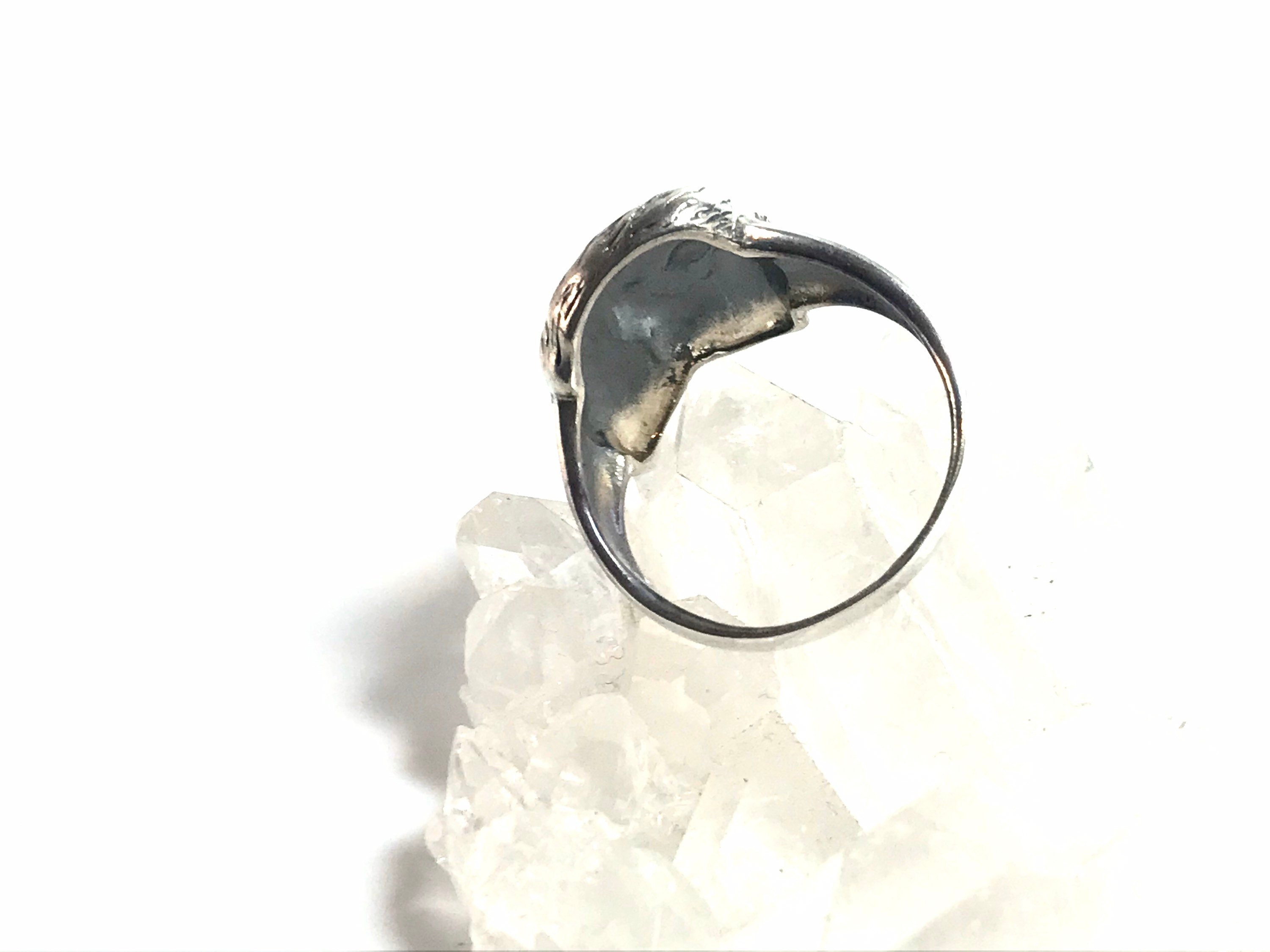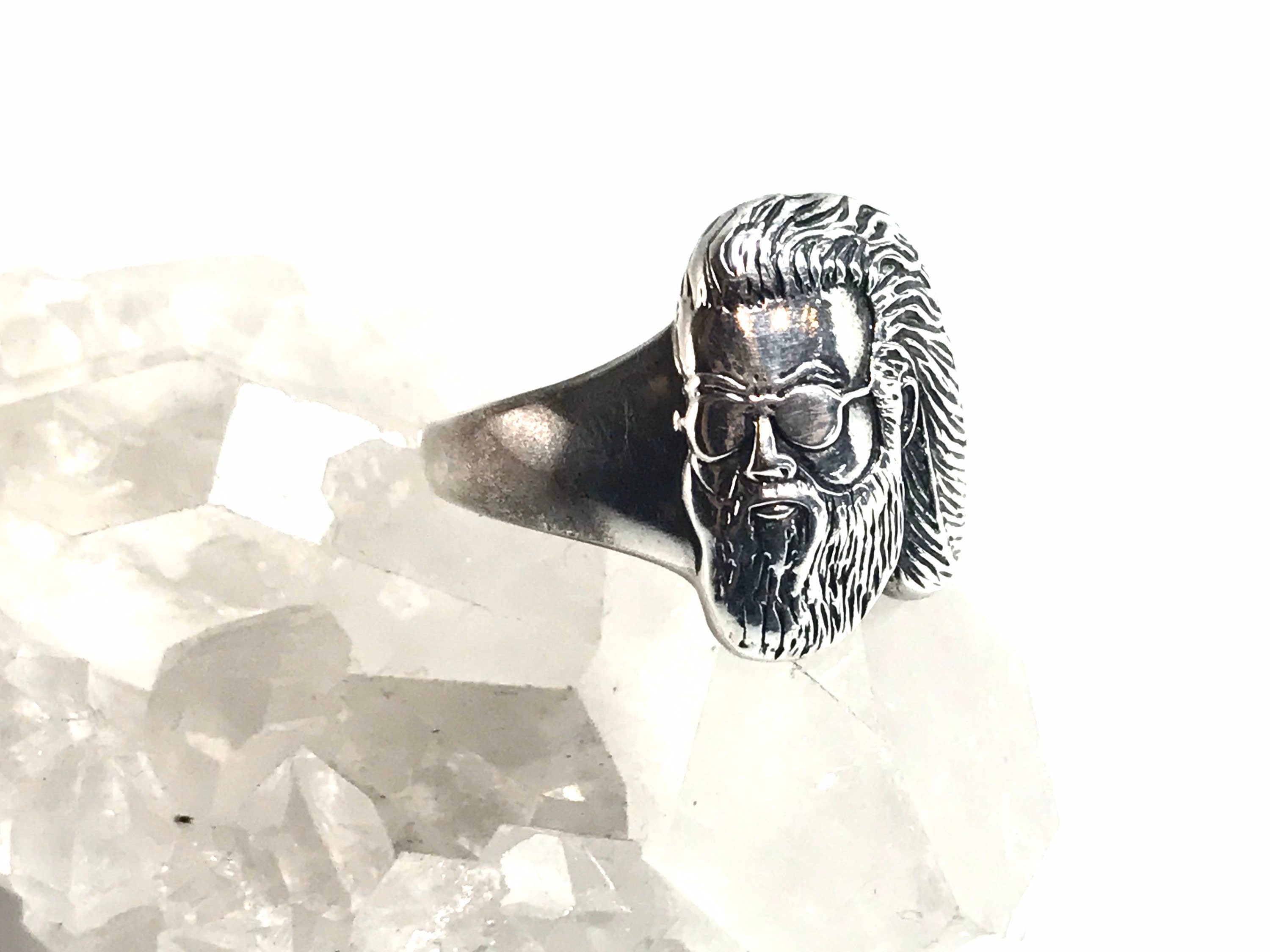 Here we have a lovely hand-cast ring which features the image of Jerry Garcia's face. The design of this ring is based on the famous photo of Jerry gazing at the pyramids while in Egypt with the Grateful Dead. This ring boasts very fine and detailed craftsmanship.