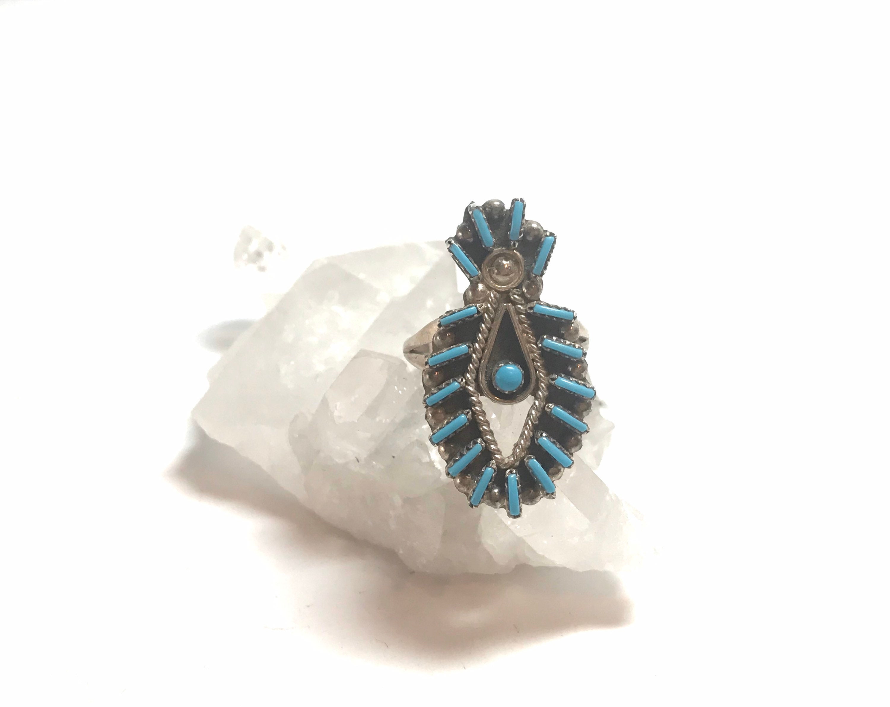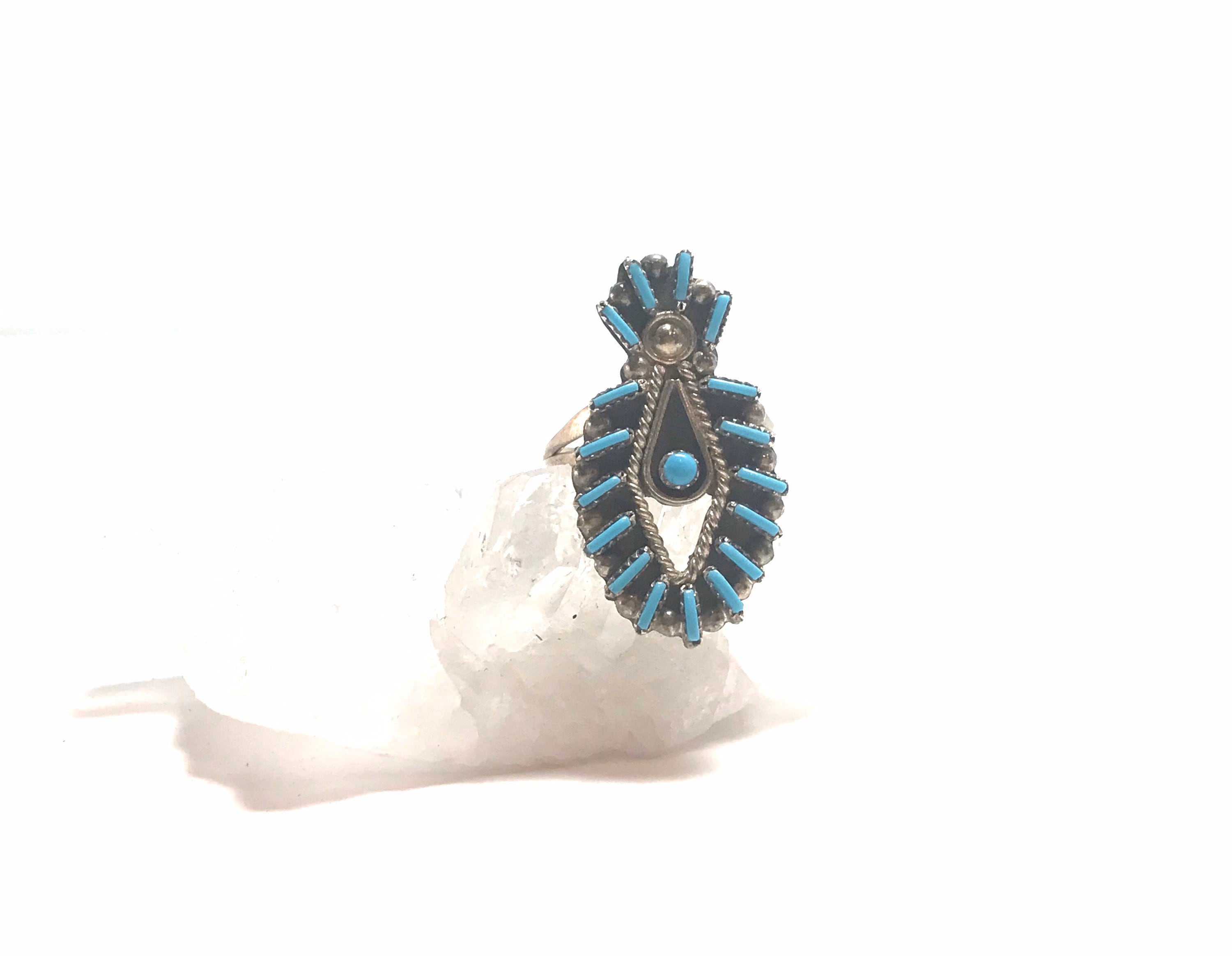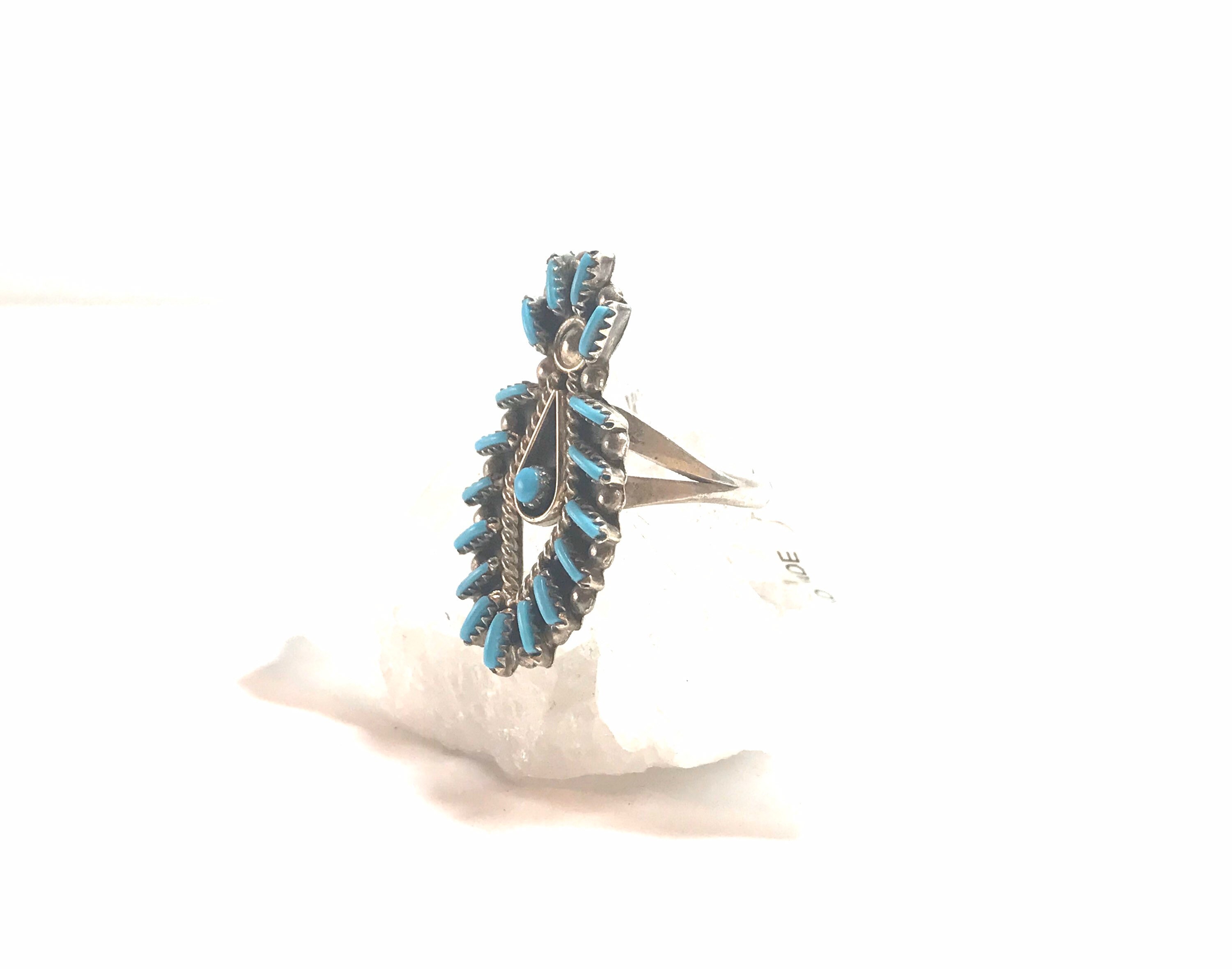 This sterling silver ring is handmade by renowned Zuni artist Philander Gia. Featuring beautiful pieces of Turquoise.