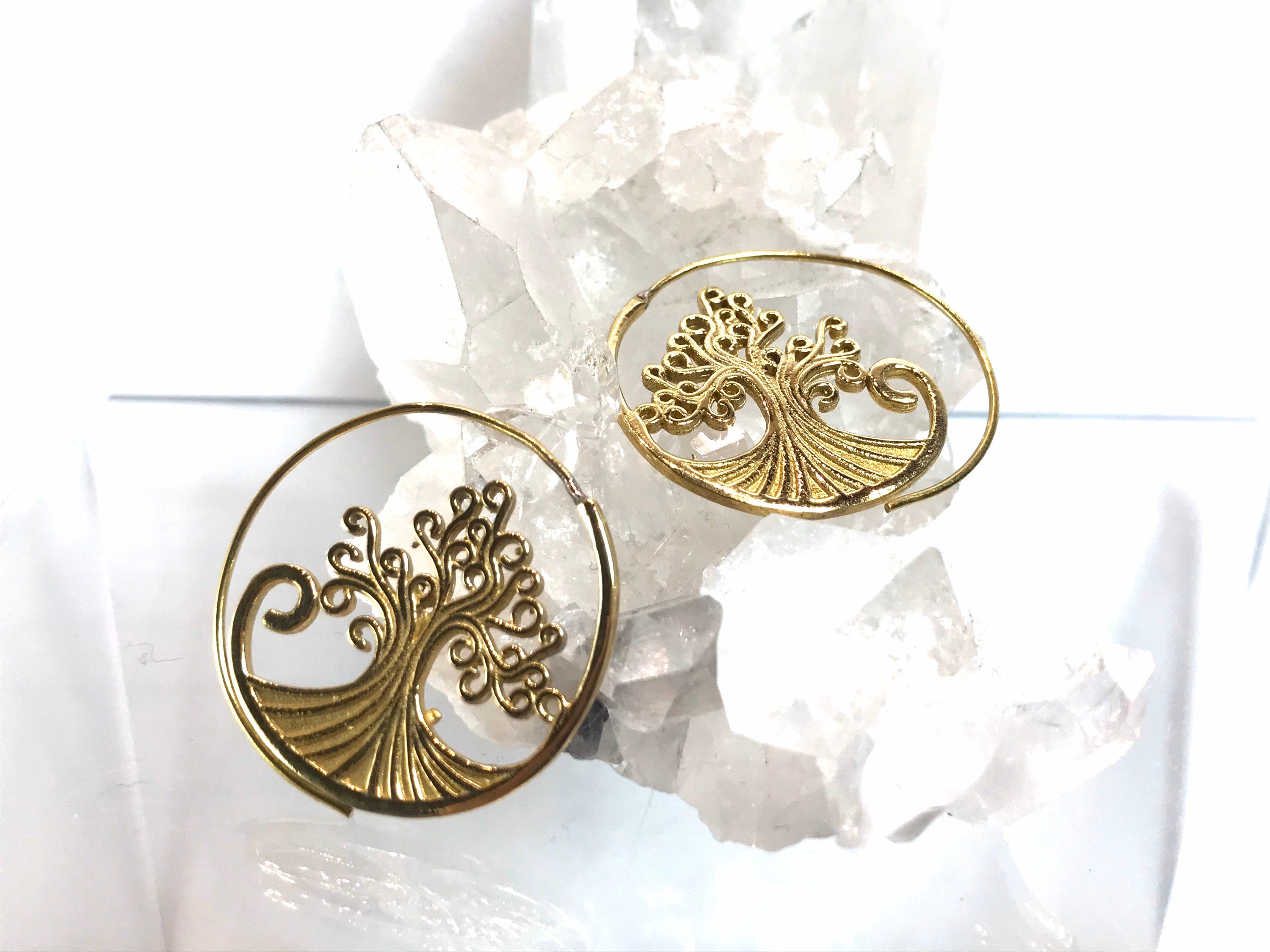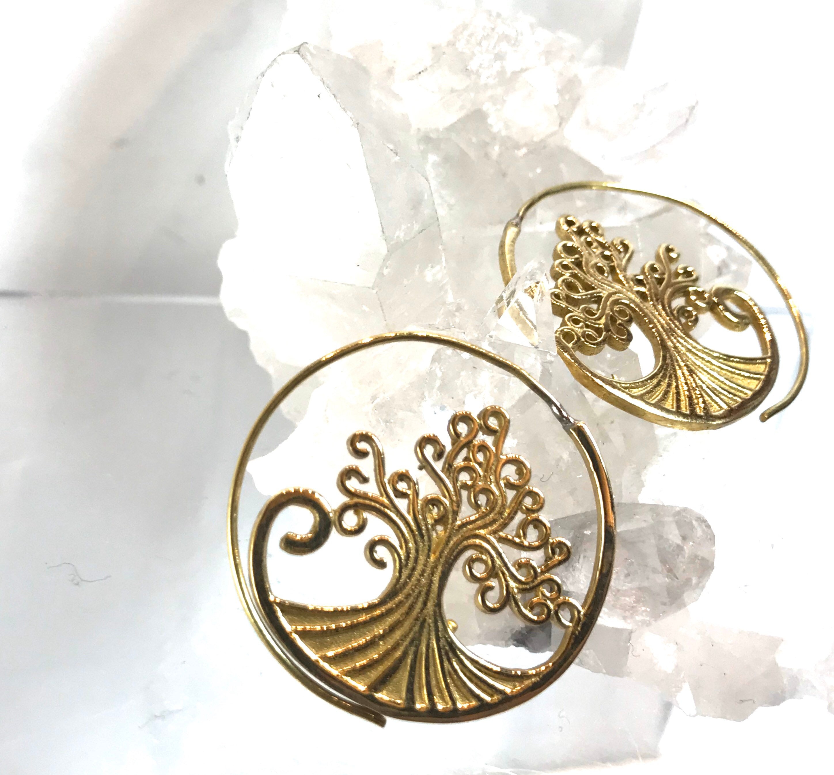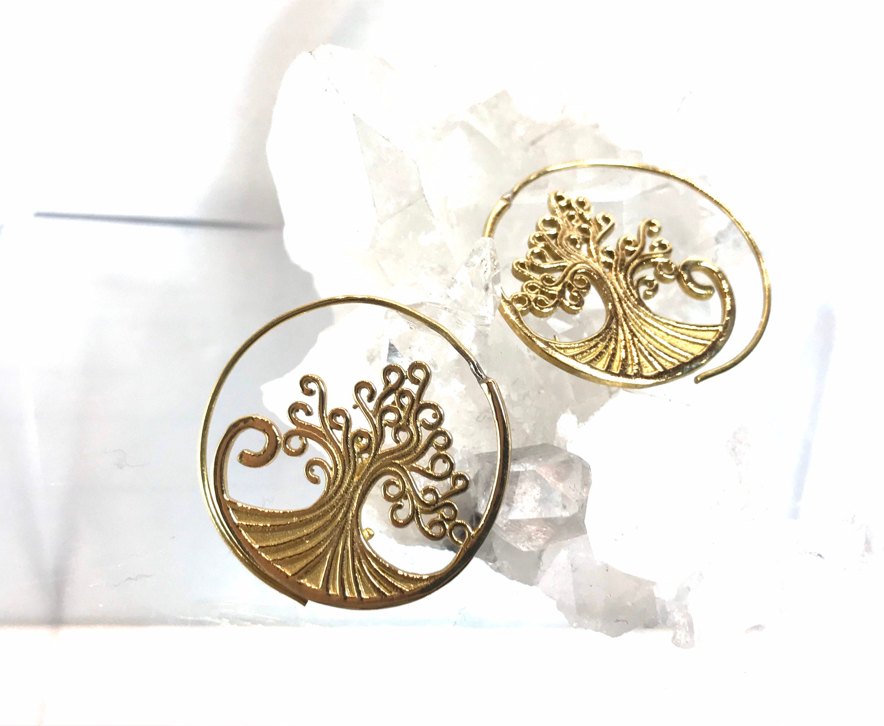 Simple and detailed swirling wave tree of life earrings . Made with pewter in gold color.